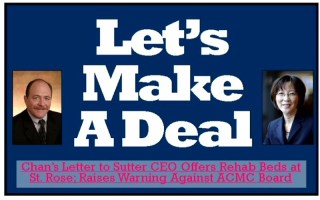 The letter to Sutter CEO Pat Fry appears to offer a starting point in negotiations by setting aside 50 beds at St. Rose to be operated by ACMC for acute rehabilitation. Far more stern language later, though, points to the county playing hardball regarding the current makeup of the ACMC board, which it maintains the power to appoint trustees.