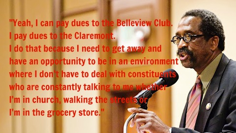 “You say that I pay dues to the Belleview Club. Yeah, I can pay dues to the Belleview Club. I pay dues to the Claremont. I do that because I need to get away and have an opportunity to be in an environment where I don’t have to deal with constituents who are constantly talking to me whether I’m in church, walking the streets or I’m in the grocery store. Once again, it didn’t say paying dues was illegal. It just said if I’m using those dues and it’s inappropriate that I need to pay those dues back to my campaign. So you make all these accusations that are totally outlandish.