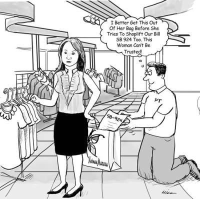 The group repurposed a new version of the same cartoon for even more biting effect and posted it to its Web site June 7. In addition to the new tagline, “Could Mary Hayashi shoplift SB 924?” the physical therapists depicted in the panel is now taking the senate bill out from Hayashi’s Neiman Marcus bag with a thought bubble saying, “This woman can’t be trusted.” The bill, SB 924, was passed by the State Senate last January and sits in the Hayashi-chaired Assembly Business, Professions and Consumer Protections Committee. It is not scheduled for debate over the next two weeks, according to the Assembly Daily File, but could be heard as early as June 26.