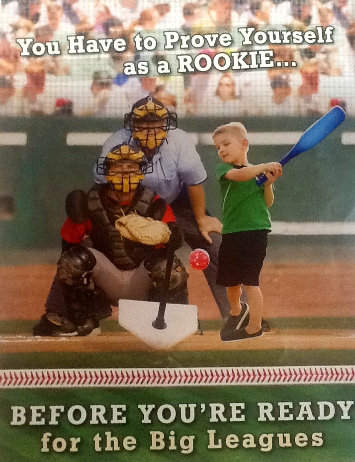 Those remarks appear to be the basis for one of the most hilarious political mailers of this entire campaign season. The mailer sent last week to district voters, features a young boy swinging harmlessly at a batting tee with two adults in catcher’s gear and an umpire in the background. “You have to prove yourself as rookie,” the front of the large mailer reads, “before you’re ready for the Big Leagues.”