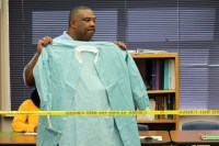 ELECTION’ 12//HAYWARD SCHOOL BOARD//PROFILE | The students gather around the makeshift crime scene with yellow tape sectioning off students at the corners of the classroom with their papers and pencils at their finger tips. A plastic human body is spread out before them with the paraphernalia of a criminal surrounding the haggard corpse, cocaine, a bag of pills, a 9mm pistol and a bloodied knife. Their job is to measure the size of the crime scene, “West wall, 10 feet! East wall 10 feet!” shouts a student as he and his colleague snake around the makeshift murder scene.