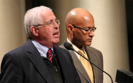 | Police consultant Bob Wasserman and Oakland Police Chief Howard Jordan Jan. 15 in Oakland. PHOTO/Shane Bond |