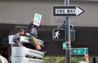 Protesters on Broadway in Oakland following