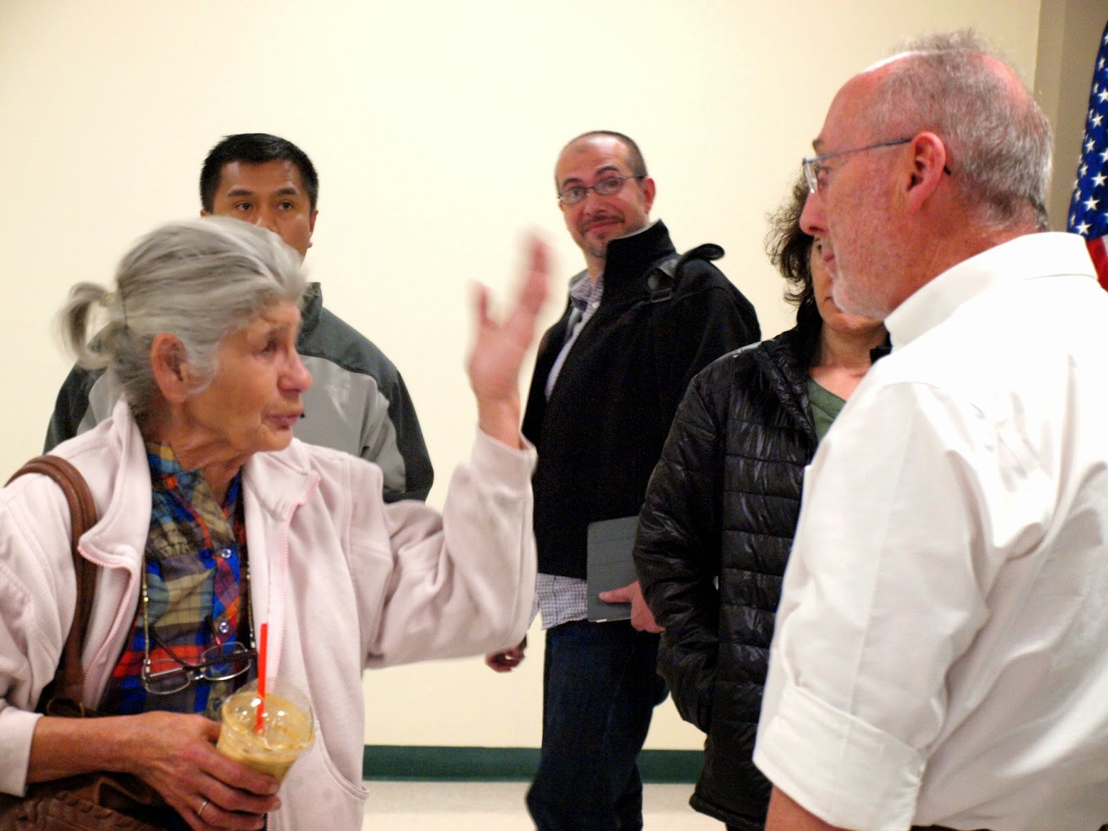 | One of the few occasions when I was attempting to surreptitiously keep an eye on former Hayward Mayor Michael Sweeney’s public dealings, otherwise known as a photo bomb. PHOTO/Natalia Aldana |