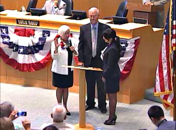 New Councilmember Sara Lamnin, the top vote-getter last June in the City Council race, struck a positive note throughout her remarks and declared, “Together we will move Hayward forward.” In addition, Councilmember Marvin Peixoto was sworn-in for a second term and the new City Council voted to name Councilmember Greg Jones as mayor pro tempore (Hayward’s version of vice mayor) for the next year.