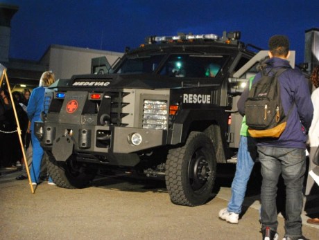The Bearcat MedEvac armored personnel carrier lent to the city last November was on display for public perusal Thursday evening. The black, oversized armored truck configured like an ambulance has not been deployed, said police, but several officers have taken it for a test-drive. The loaner was meant to give the public an idea how the roughly $33,333 in asset forfeiture proceeds would be spent, said police and city officials.