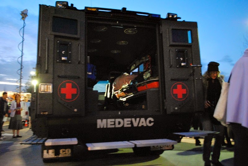 “You can’t fool us,” said JP Massar of Oakland. “Just because you painted ‘Rescue’ on the side, doesn’t make it any less of a military vehicle.”