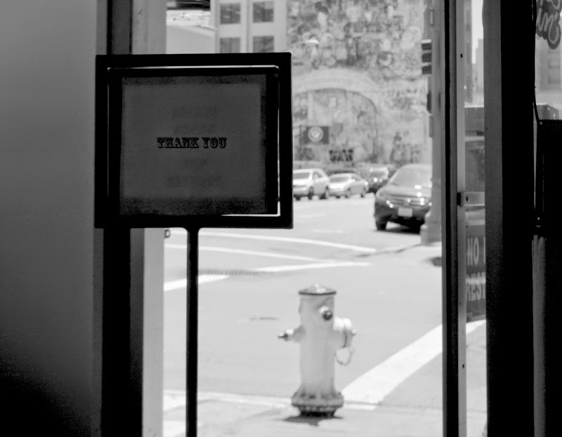 | Sign at the door of a restaurant in Downtown Oakland. |