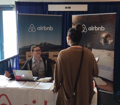 A menagerie of special interests and candidates have their own booths ringing around the San Jose Convention Center. Sen. Bernie Sanders have one. Marijuana legalization has one. Notably, Airbnb has booth here and they, indeed, stick out. But their presence shows the room-renting app is continuing to make a big push in the world of Sacramento lobbying.