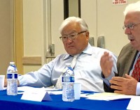 A minute later Honda’s smartphone began ringing uncontrollably, the speaker paused to allow Honda to mute the ringer. But that wasn’t the only slightly embarrassing moment for Honda. At one point, Honda referred to the social security expert seated next to him, an advocate named Ernie Powell, by the wrong first name. This came after introducing him correctly at the start of the event.