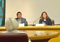 and Ellen Corbett at a forum Sept. 19 in Oakland.