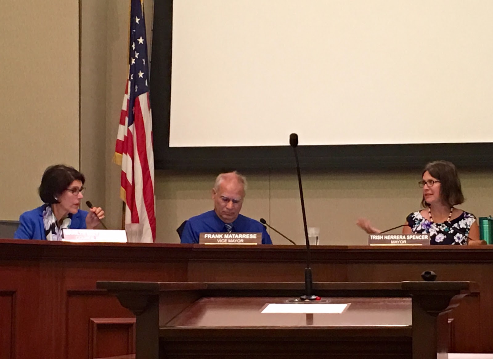 Frank Matarrese, Mayor Trish Spencer at a council