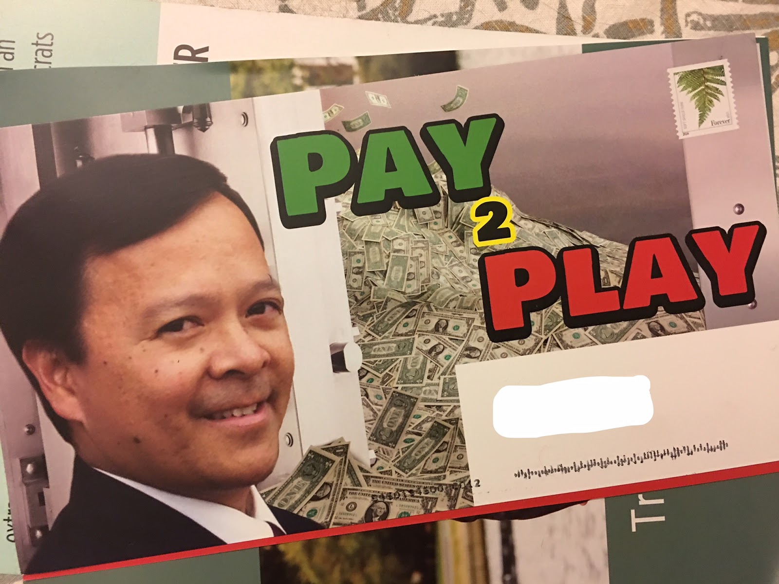 Assuredly somebody has it in for Alameda Councilmember Tony Daysog. Over the weekend, a second scathing attack piece hit mailboxes. And like the first, no group has taken credit for the negative mailer. After linking Daysog to Donald Trump last week, this latest mailer alleges the incumbent recently engaged in pay-to-play politics. Although, the piece clumsily shows Daysog recently received campaign contributions from three local donors. It then goes on to assert Daysog called for a project review on Nov. 2 that is favorable to a donor who had just given him a contribution one week prior. Neither mailer contains a “paid for by” disclosure. Both could be illegal under the state’s election rules depending on the number distributed to Alameda voters.
