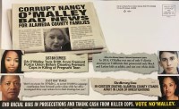 “Corrupt Nancy O’Malley bad news for Alameda County families,” blares a headline on the mailer, along with a photo of a dour-looking O’Malley.