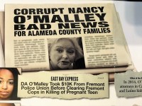 The mailer also includes newspaper headlines that highlight O’Malley receiving a $10,000 contribution last year from the Fremont Police Officers Association while the police union’s president was under investigation by the District Attorney’s Office for his part in the shooting death of a 16-year-old pregnant girl in Hayward.